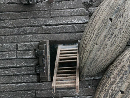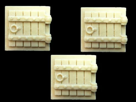 "The wooden casing is ideal in a dungeon, as well as a decoration in a building, room or a diorama. The hatch is molded from high-quality resin and comes unpainted. The wooden hatch is modeled in detail. The wood grain is very well reproduced and fittings as well as the ring of metal can be worked out individually with a little color and skill. The hatch is simply bonded and immediately changed a room or a building.