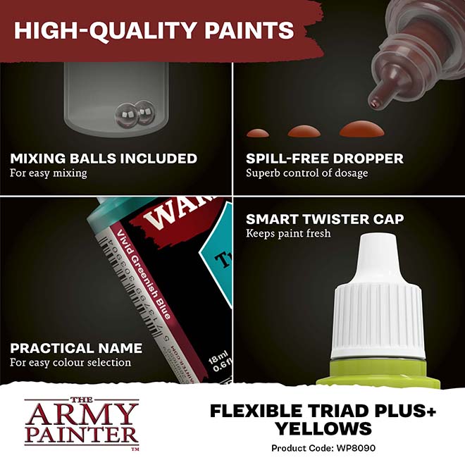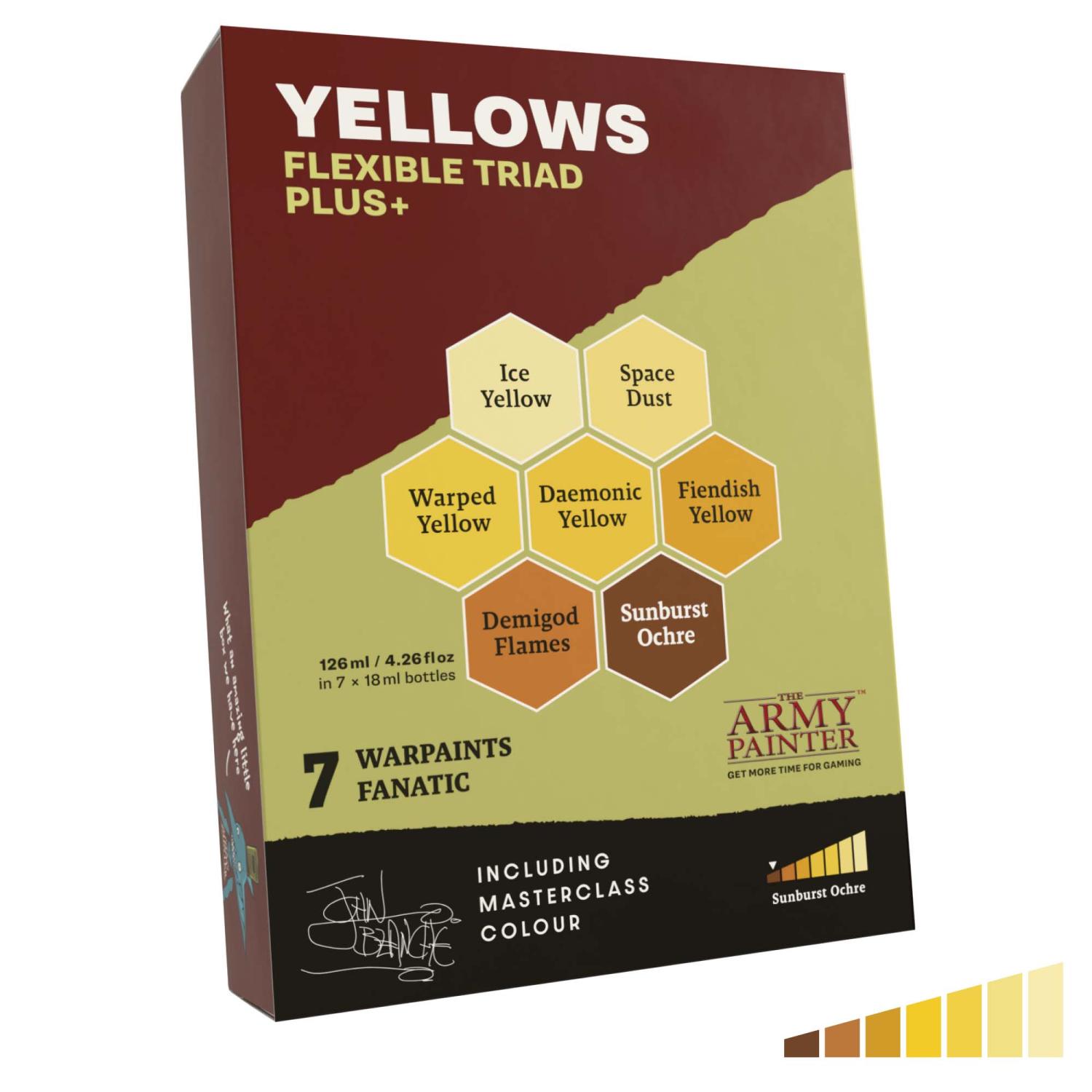 This paint set features not only the complete Yellows Flexible Triad, but also