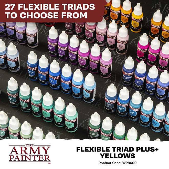 The Flexible Colour Triad System is a segment, or family, of six colours that range from dark to light with a consistent hue. This system allows you to easily select paints that create a natural colour progression on your miniatures.